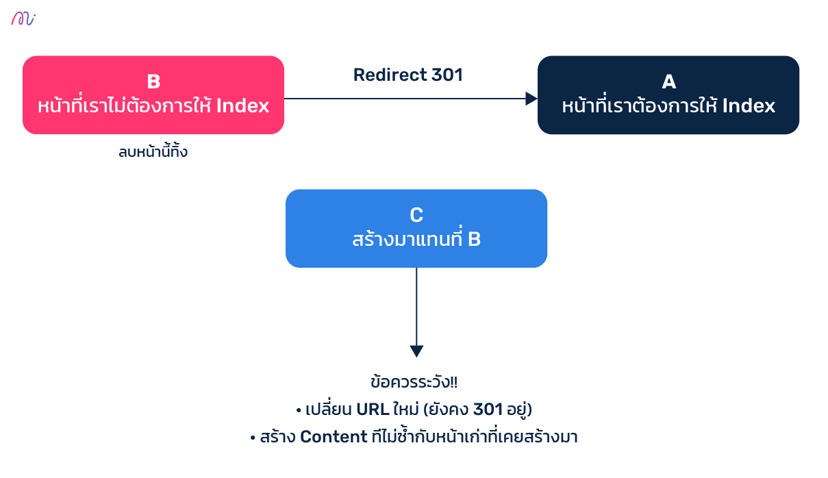 ควรใช้วิธีอย่างระมัดระวังมากๆ เราไม่อยากส่ง Mix Signal ให้กับ Google แล้วกลับไปจับหน้า C อีกครั้ง จะทำให้ส่งผลเสียมากๆกับเว็บไซต์ในส่วนของ Ranking และ Traffic เราอาจจะโดนเล็งในทิศทางไม่ดีกับ Google