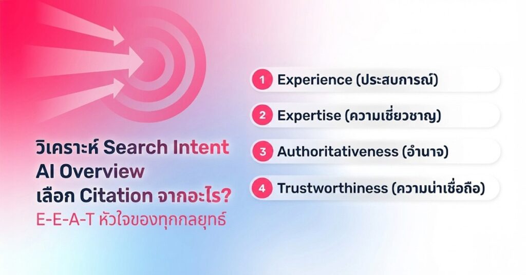 ปัจจัยพื้นฐานที่ Google ย้ำมาตลอด คือ E-E-A-T (Experience, Expertise, Authoritativeness, Trustworthiness) ซึ่งในยุค AI Search นี้มีความสำคัญเพิ่มขึ้นเป็นทวีคูณ